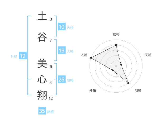 土谷 美心翔さんを姓名の画数から五運を鑑定
