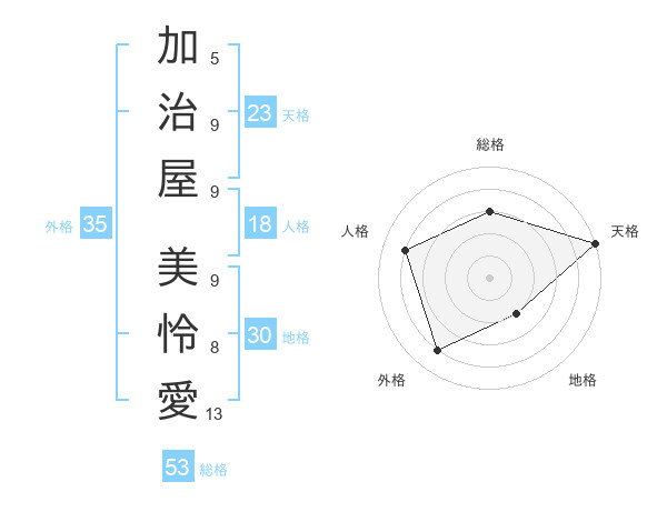 加治屋 美怜愛さんの天格は23画の5点!