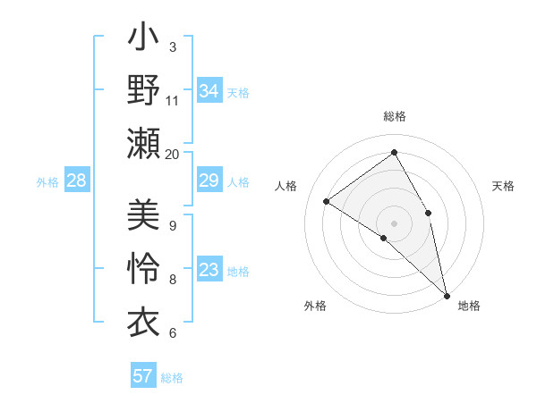 小野瀬 美怜衣さんの総格は57画の4点