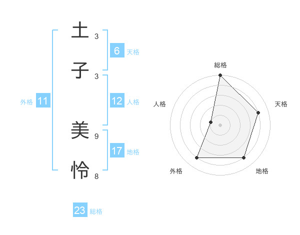 土子 美怜さんの総格は23画の5点!
