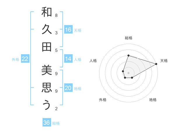和久田 美思うさんの天格は16画の5点!