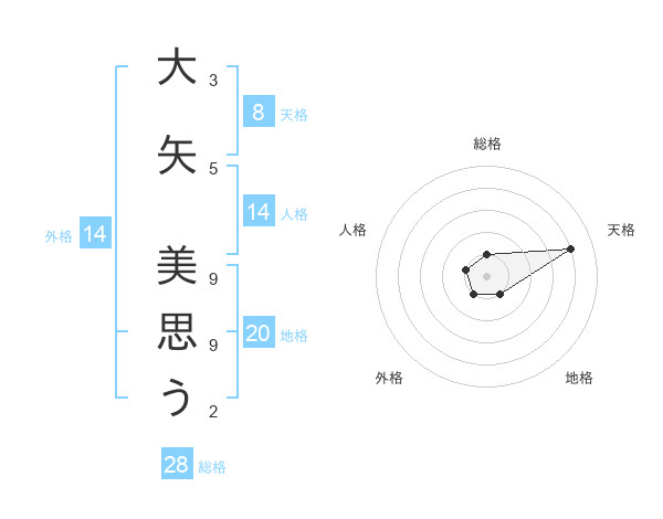 大矢 美思うさんを姓名の画数から五運を鑑定
