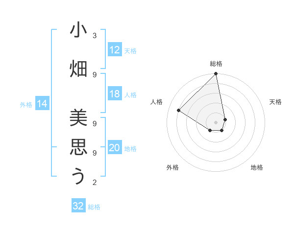 小畑 美思うさんを姓名の画数から五運を鑑定