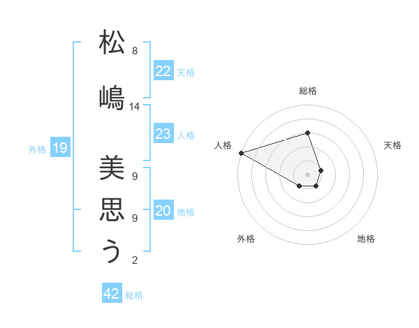 松嶋 美思うさんの総格は42画の3点!