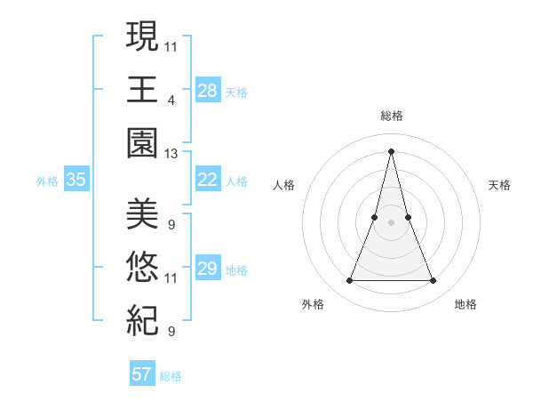 現王園 美悠紀さんを姓名の画数から五運を鑑定