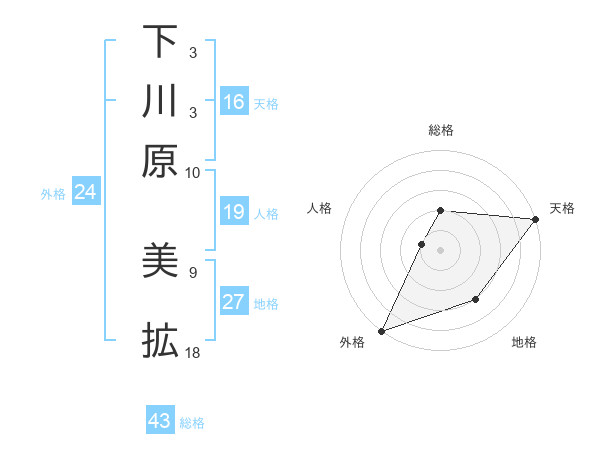 下川原 美拡さんを姓名の画数から五運を鑑定