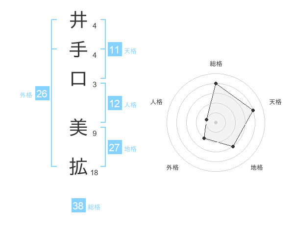 井手口 美拡さんを姓名の画数から五運を鑑定