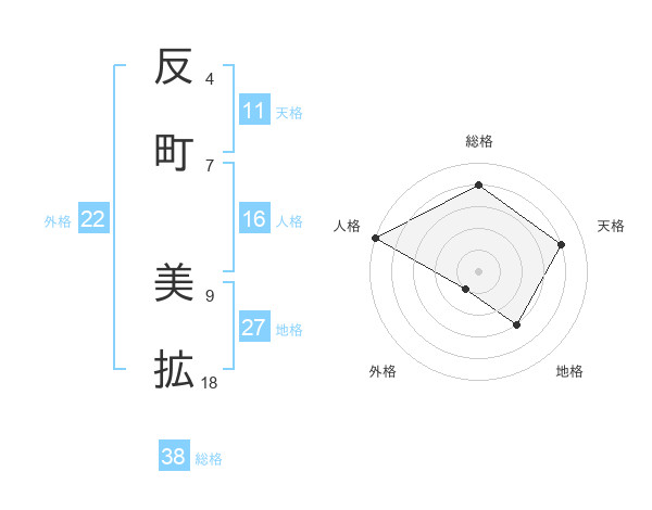 反町 美拡さんの総格は38画の4点!