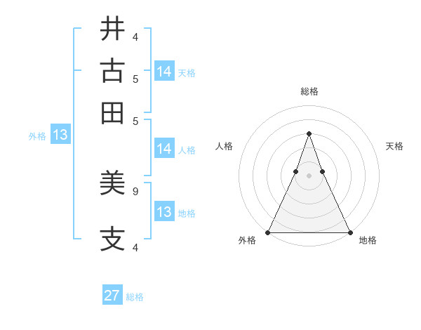 井古田 美支さんの総格は27画の3点!