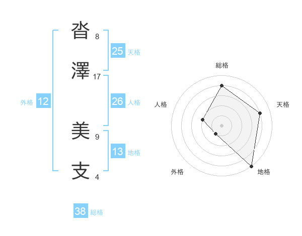 沓澤 美支さんの総格は38画の4点!