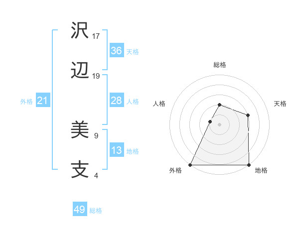 沢辺 美支さんを姓名の画数から五運を鑑定