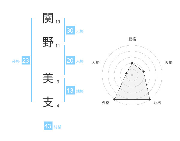 関野 美支さんの総格は43画の2点!