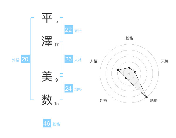 平澤 美数さんの総格は46画の1点!