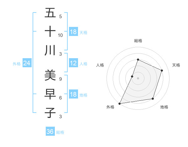 五十川 美早子さんを姓名の画数から五運を鑑定