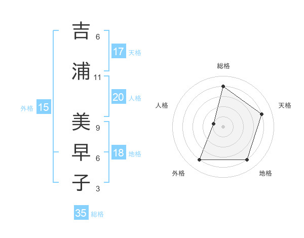 吉浦 美早子さんを姓名の画数から五運を鑑定