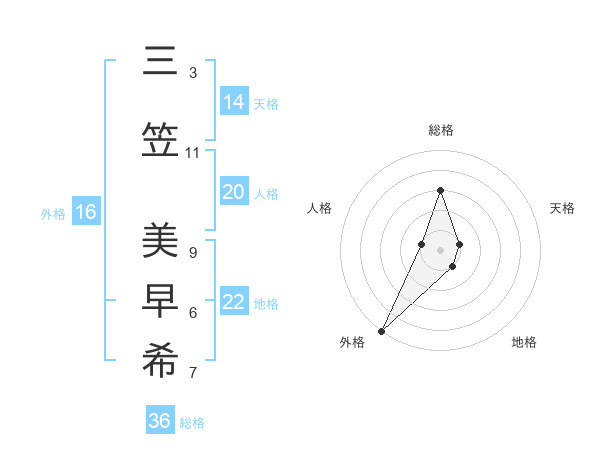 三笠 美早希さんを姓名の画数から五運を鑑定