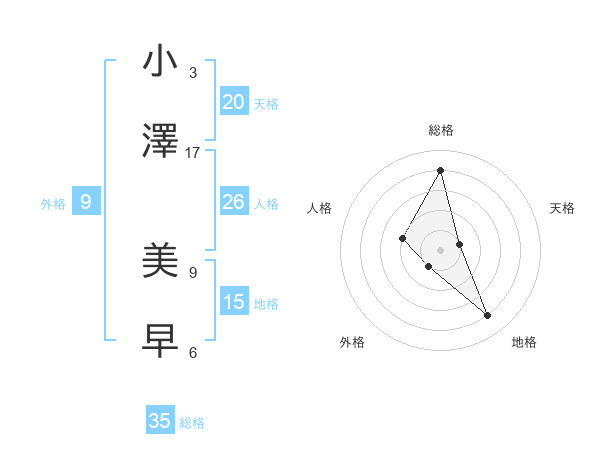 小澤 美早さんの天格は20画の1点!