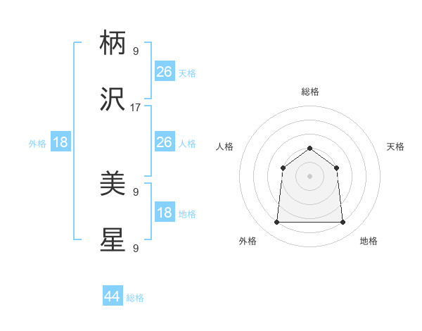 柄沢 美星さんを姓名の画数から五運を鑑定