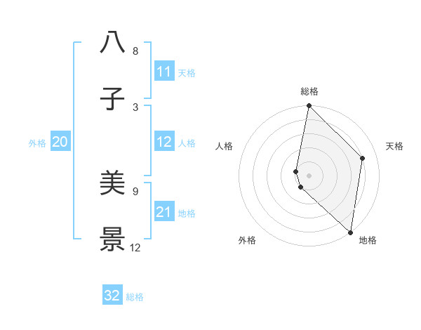 八子 美景さんの総格は32画の5点!