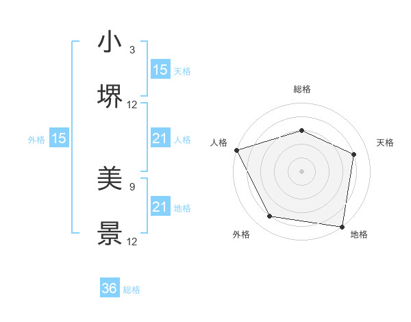 小堺 美景さんの人格は21画の5点!