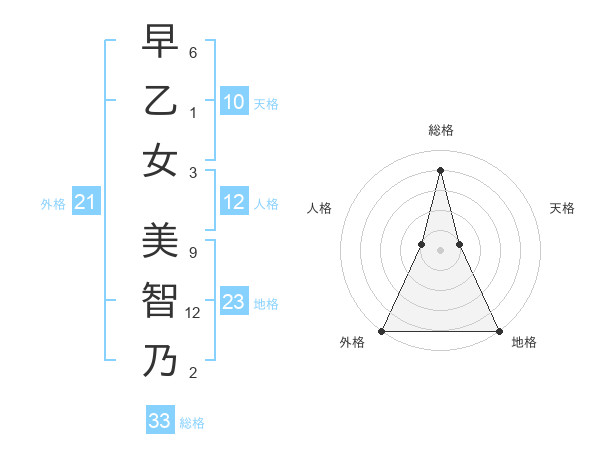早乙女 美智乃さんの総格は33画の4点!