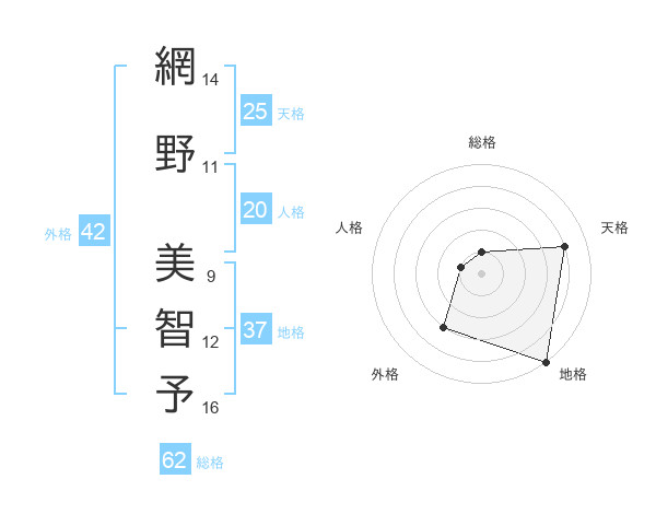 網野 美智予さんの総格は62画の1点!