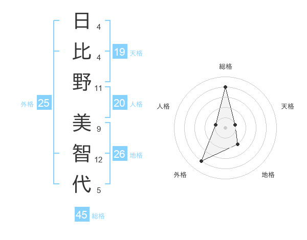 日比野 美智代さんを姓名の画数から五運を鑑定