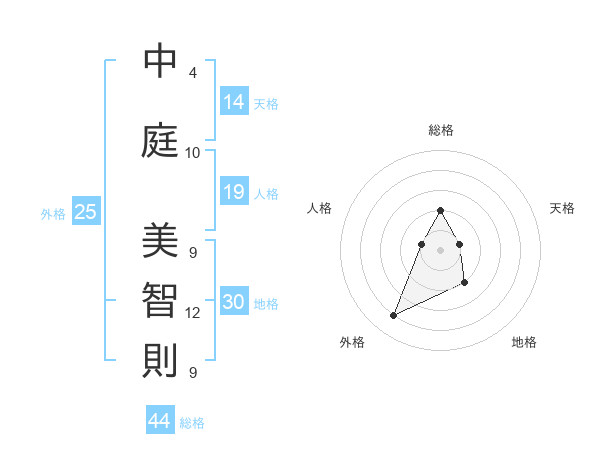 中庭 美智則さんを姓名の画数から五運を鑑定