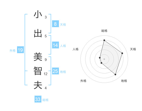 小出 美智夫さんの総格は33画の4点