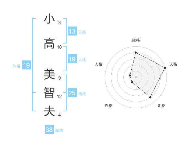 小高 美智夫さんを姓名の画数から五運を鑑定
