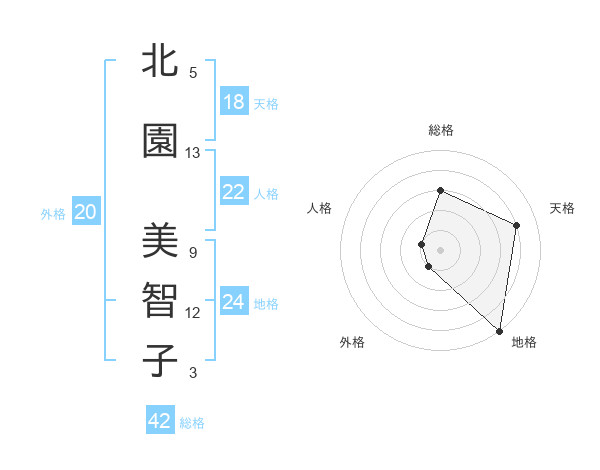 北園 美智子さんの地格は24画の5点!