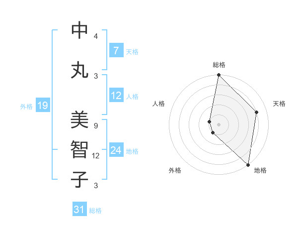 中丸 美智子さんの総格は31画の5点!