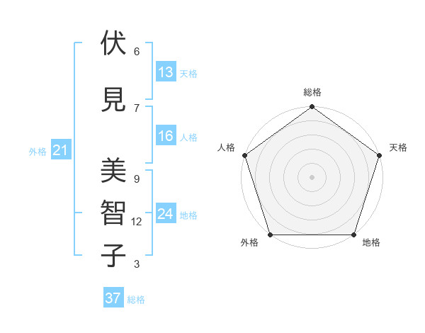 伏見 美智子さんの総格は37画の5点!