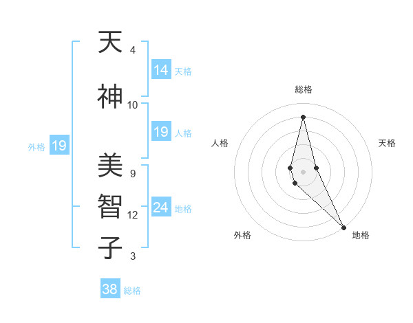 天神 美智子さんの総格は38画の4点!