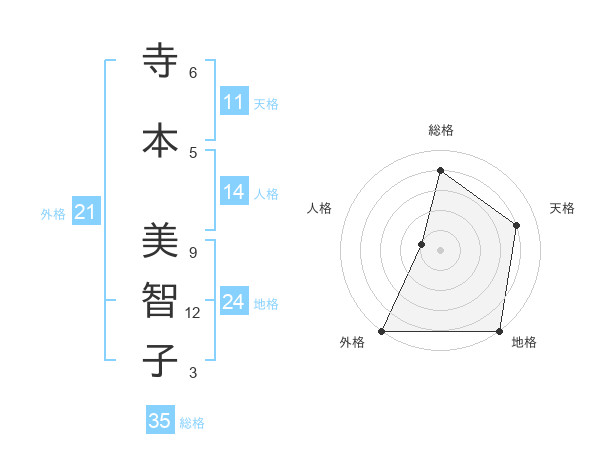 寺本 美智子さんを姓名の画数から五運を鑑定