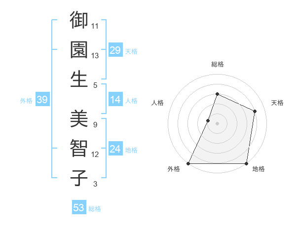 御園生 美智子さんを姓名の画数から五運を鑑定