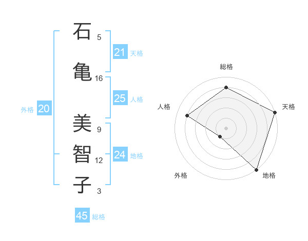 石亀 美智子さんの地格は24画の5点!