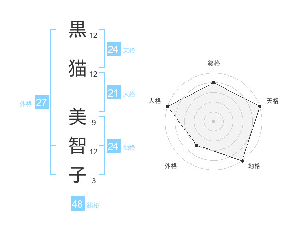 黒猫 美智子さんを姓名の画数から五運を鑑定
