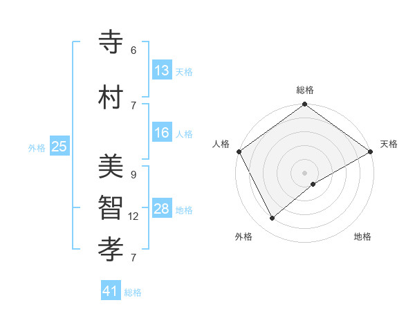 寺村 美智孝さんの総格は41画の5点!