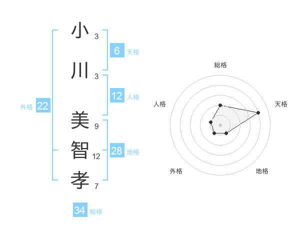小川 美智孝さんを姓名の画数から五運を鑑定