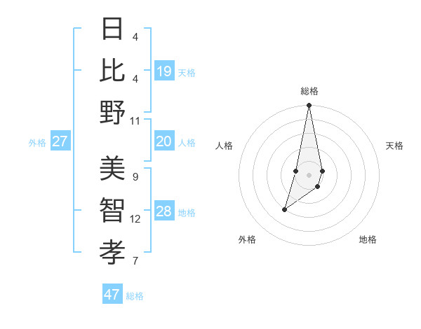 日比野 美智孝さんを姓名の画数から五運を鑑定