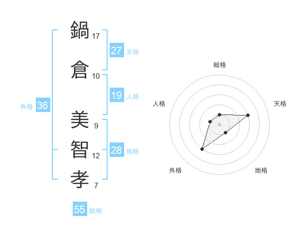 鍋倉 美智孝さんの天格は27画の3点!