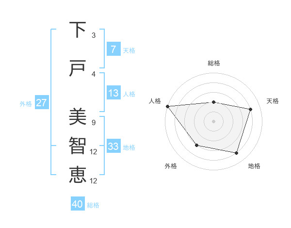 下戸 美智恵さんを姓名の画数から五運を鑑定