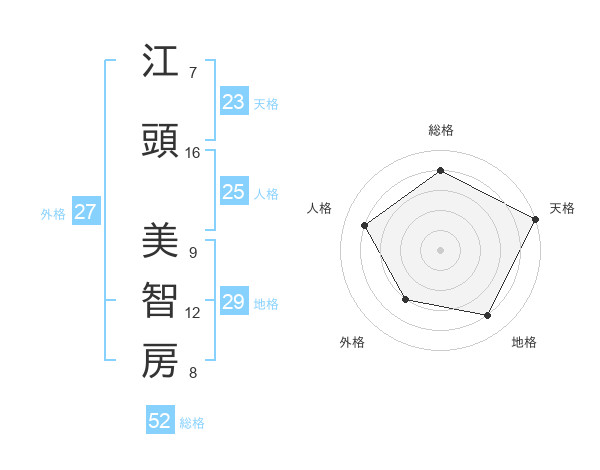 江頭 美智房さんの総格は52画の4点!