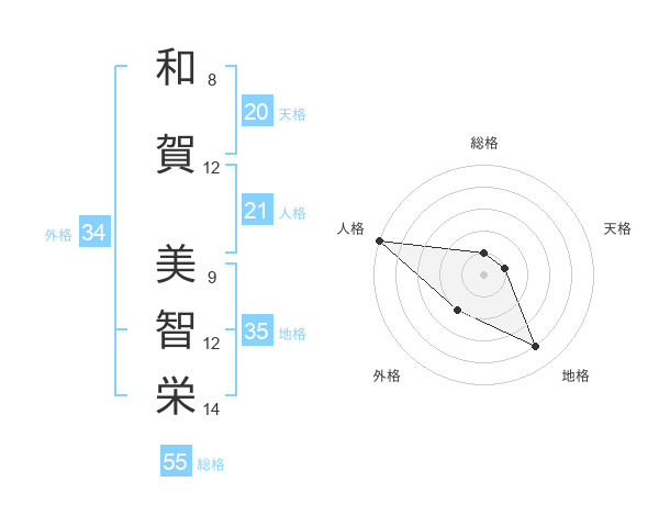 和賀 美智栄さんの人格は21画の5点!