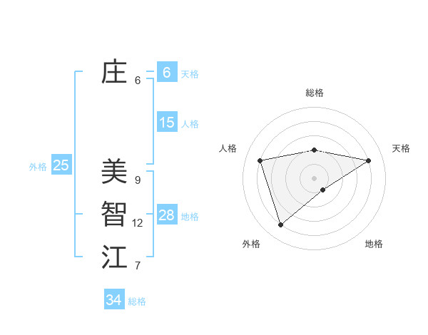 庄 美智江さんの地格は28画の1点!