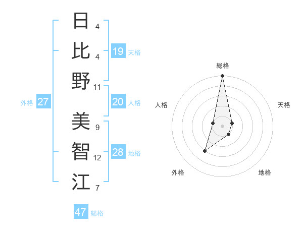 日比野 美智江さんを姓名の画数から五運を鑑定