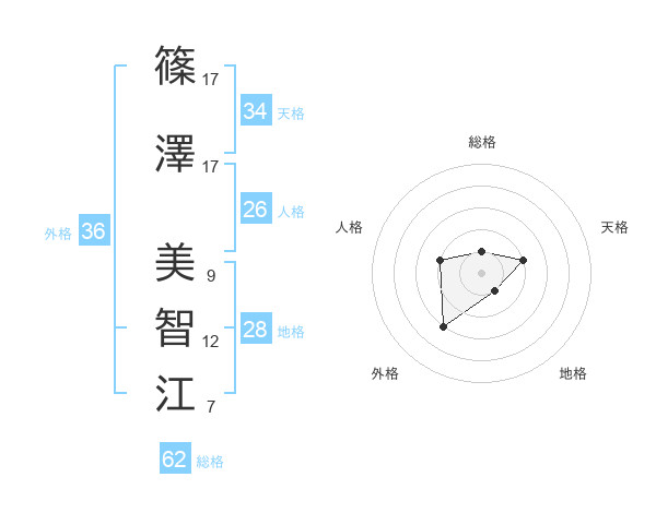 篠澤 美智江さんを姓名の画数から五運を鑑定