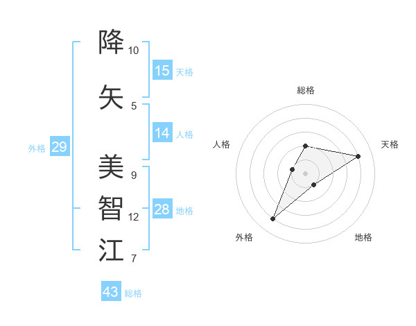 降矢 美智江さんの天格は15画の4点!