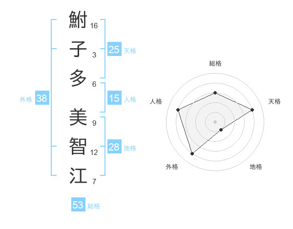 鮒子多 美智江さんを姓名の画数から五運を鑑定